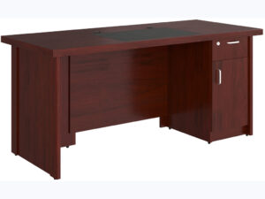 Bàn trưởng phòng gỗ sơn PU cao cấp được làm bằng gỗ công nghiệp sơn phủ PU cao cấp, Mặt bàn ghép hộp dày 37mm sơn, cạnh bàn dán nẹp PVC, bàn có hộc liền sát đất gồm 01 ngăn kéo, cánh mở. Yếm bàn dán giấy trang trí. Tay nắm nhôm, khoá chìa trắng.