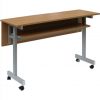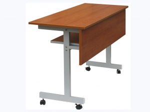 Bàn hội trường khung thép sơn tĩnh điện có bánh xe, mặt bằng gỗ Melamine màu vàng gỗ 25mm. Bàn có ngăn và yếm lửng phía trước.