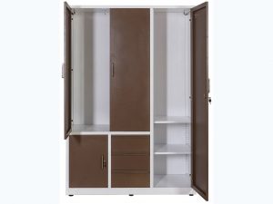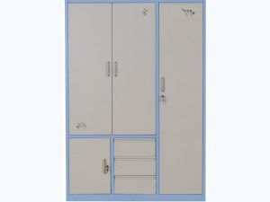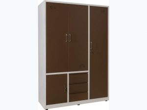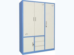 Tủ sắt treo (đựng) quần áo đựng đồ cá nhân được làm bằng sắt sơn tĩnh điện. Tủ dùng để phục vụ cho cá nhân, hộ gia đình. Tủ gồm 3 buồng, 4 cánh và 3 ngăn kéo. Cánh có hóa văn trang trí, trong khoang 2 cánh ngắn có 1 suốt treo áo, khoang cánh sắt dài có 1 suốt treo áo và 2 đợt di động, cánh ngắn trái có 1 tấm gương.