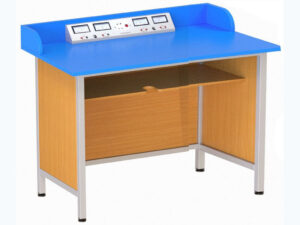Bàn thí nghiệm vật lý 2 chỗ ngồi, khung thép sơn tĩnh điện. Mặt bàn composite cách điện có độ bền cơ học cao, kết hợp ốp vách gỗ melamine. Bàn có trang bị 01 hộp điện tích hợp đồng hồ đo ampeke + vol kế AC & DC kèm ổ cắm điện tiện dụng.(không lấy hộp điện vui lòng trừ đi 1,000,000 đ)