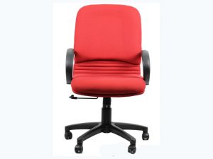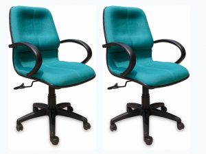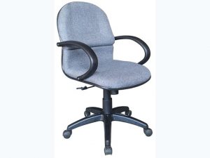 Ghế lưng trung, đệm tựa bọc vải, chân tay bằng nhựa. |