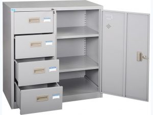 | 5 | Tủ sắt TU88-4D | 880 | 407 | 915 | Tủ sắt sơn tĩnh điện 2 khoang: Khoang cánh sắt mở bên trong có 2 đợt di động. Khoang 4 ngăn kéo sử dụng chung 1 thanh khóa dàn. | ![]() |