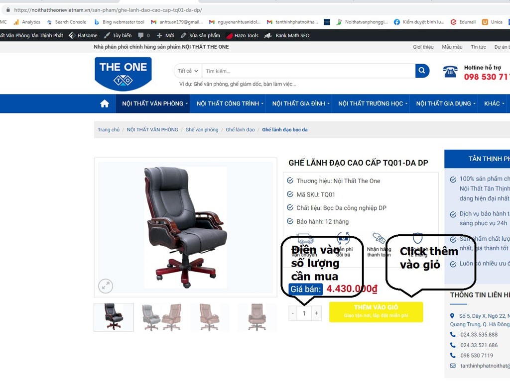 Click vào nút thêm vào giỏ hàng để sản phẩm vào giỏ hàng của bạn