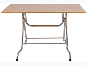 Bàn ăn sử dụng khung chất liệu inox 201 toàn bộ, mặt bàn gỗ cao su ghép thanh, các viền cạnh được bo R đảm bảo an toàn cho người sử dụng.