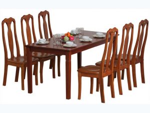 Bàn ăn gỗ tự nhiên toàn bộ sơn phủ Pu cao cấp. Mặt bàn hình chữ nhật.