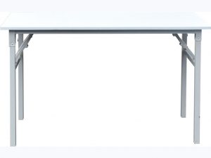 Bàn gấp khung thép sơn tĩnh điện sử dụng ống thép vuông 30×30, mặt gỗ Melanmine màu ghi. Bàn được thiết kế không ngăn.