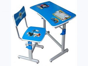 Bàn ghế học sinh cấp1,2 dùng trong gia đình khung thép, mặt bàn và đệm tựa ghế gỗ Melamine con giống.