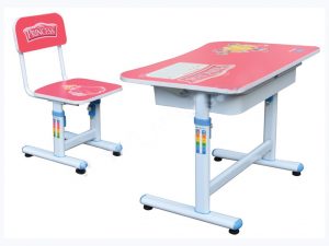 Bàn ghế học sinh cấp1,2 dùng trong gia đình khung thép sơn tĩnh điện, mặt bàn và đệm tựa ghế gỗ Melamine con giống.