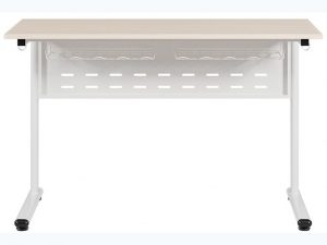 Bàn học sinh cấp1,2 dùng trong trường học 2 chỗ ngồi, khung thép sơn trắng. Mặt bàn gỗ melamine, ngăn bàn thép sơn kết hợp yếm tôn đột hoa văn trang trí. Mặt gỗ dày 17mm.