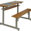 Bàn học sinh, sinh viên liền ghế có tựa. Sử dụng khung thép sơn tĩnh điện và mặt gỗ tự nhiên được phủ 1 lớp sơn trong suốt để bảo vệ bề mặt và giữ được bảo màu sắc gỗ.
