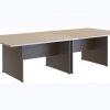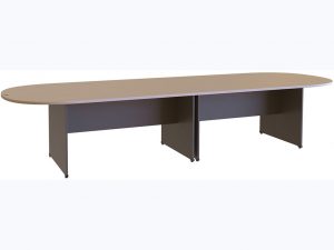 Bàn ghế phòng họp HP bàn làm bằng gỗ công nghiệp melamine màu ghi sáng kết hợp chân màu ghi chì, mặt bàn hình chữ nhật hoặc oval, bàn có 2 phần ghép lại với nhau và có 4 chân, chân bàn với mặt bàn liên kết với nhau bằng cam, ốc vít.