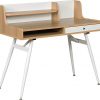 Bàn làm việc gia đình khung bàn bằng ống thép, được thiết kế chân ống tóp sơn tĩnh điện màu trắng S26. Mặt bàn và cụm giá để sách bằng gỗ Melamine màu vân gỗ M60 và màu trắng M52. Bàn có 2 ngăn kéo và 1 ngăn rỗng để đồ.