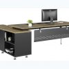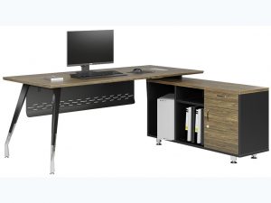 Bàn lãnh đạo bright được làm bằng gỗ công nghiệp melamine cao cấp vát cạnh 45 độ hai cạnh dài , Bàn có tủ phụ kèm 1 ngăn kéo và 1 cánh mở liền bàn, bàn có 1 ổ cắm trượt và nắp đi dây vuông màu đen tạo nên sự sang trọng và đẳng cấp cho sản phẩm, kiểu dáng hiện đại.