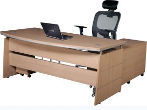 Bàn ghế giám đốc royal được làm bằng gỗ công nghiệp melamine cao cấp, mặt bàn lượn cong có ốp gỗ sơn trang trí ở phía dưới, bàn có yếm gỗ. (Note: Gía chưa bao gồm tủ phụ)