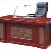 Bàn làm việc lãnh đạo gỗ sơn PU được làm bằng gỗ công nghiệp sơn phủ PU cao cấp, yếm bàn ốp nổi PVC đen, chân bàn ghép hộp chữ L phía trước soi chỉ sơn đen trang trí, mặt bàn hình chữ nhật có tấm PVC trang trí tạo sự sang trọng và thoải mái cho người sử dụng. (Gía bàn chưa bao gồm tủ phụ, hộc và CPU)