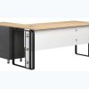Bàn nhân viên royal nội thất the one bàn được làm bằng gỗ công nghiệp melamine, Bàn có yếm gỗ chia làm 2 tấm liên kết với nhau bằng trụ Inox, chân bàn có chỉ nhôm trang trí mặt bàn liên kết với chân bằng các trụ Inox tạo sự thẩm mỹ cho sản phẩm
