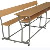 Bàn sinh viên liền ghế có tựa, sử dụng khung thép sơn tĩnh điện và mặt gỗ melamine.