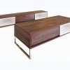 Bàn sofa cao cấp khung thép sơn tĩnh điện đen nhám, mặt gỗ Veneer óc chó và có 01 ngăn kéo.