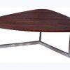 Bàn sofa mặt bàn kính cường lực màu xanh đen hoặc nâu trà, khung thép sơn đen nhám.Sử dụng vòng đế chân + đỡ mặt bàn bằng thép ống tròn Ø12.7, các nan chân bàn sử dụng ống thép rút Ø10.
