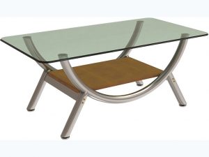 Bàn sofa văn phòng bàn sofa mặt kính khung thép mạ, có đợt gỗ.