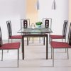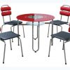 Bàn ghế ăn cao cấp khung thép sơn tĩnh điện. Mặt bàn bằng gỗ được phủ Veneer óc chó hoặc sơn high glossy. Đệm tựa ghế bằng khung thép bọc PVC chất lượng cao. Gồm 1 bàn và 4 ghế ngồi.