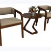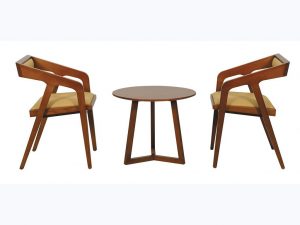 Bàn ghế khách sạn khung gỗ tần bì, đệm tựa bọc PVC, mặt bàn làm bằng gỗ cao su ghép. (Giá gồm 01 bàn và 02 ghế)