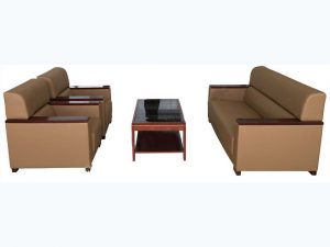 Bộ sofa văn phòng được làm bằng khung gỗ, có ốp gỗ trang trí, ghế bọc da thật tại các vị trí tiếp xúc với người sử dụng. Gía bao gồm 01 ghế băng .