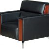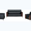 Sofa cho văn phòng được bọc da thật tại các vị trí tiếp xúc với người sử dụng kết hợp ốp gỗ sơn kiểu dáng hiện đại, chân thép mạ sơn đen. Gía bao gồm 01 ghế băng .