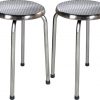 Ghế đôn giá rẻ được làm bằng khung inox, mặt ghế đệm gỗ.