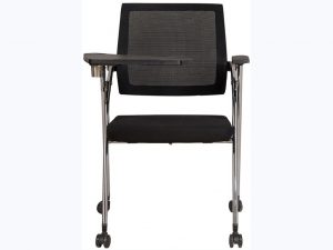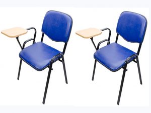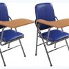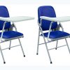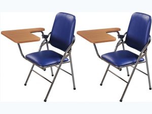 Ghế gấp có mặt bàn được làm bằng khung inox, mặt đệm và tựa bọc da công nghiệp PVC. Ghế có bàn viết bằng nhựa.