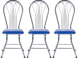 Ghế gấp giá rẻ được làm bằng khung thép mạ sáng bóng, mặt đệm bọc da công nghiệp PVC.