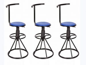 Ghế quầy bar khung thép sơn tĩnh điện, đệm mút bọc PVC. Ghế có thể điều chỉnh được độ cao và có chỗ để chân.
