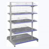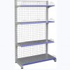 Giá siêu thị để hàng 1 mặt khung thép sơn tĩnh điện, giá có 5 tầng đề đồ (gồm đáy và đợt). Các đợt có thể di động để điều chỉnh độ cao – thấp.