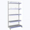 Giá siêu thị để hàng 2 mặt khung thép sơn tĩnh điện, mỗi bên có 5 tầng đề đồ (gồm đáy và đợt). Các đợt có thể di động để điều chỉnh độ cao – thấp.