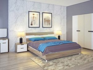 Giường ngủ cao cấp gỗ công nghiệp Melamine kết hợp sơn PU kết hợp giữa hai tông màu gỗ và trắng, được thiết kế theo phong cách hiện đại, kết hợp đồng bộ với TAP.