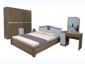 Giường ngủ cao cấp sử dụng chất liệu gỗ công nghiệp Melamine và gỗ tự nhiên sơn Pu cao cấp kết hợp giữa hai tông màu gỗ và trắng, thiết kế theo phong cách hiện đại kết hợp đồng bộ với TAP.