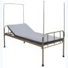 Giường y tế khung Inox, phần đầu giường và chân giường có thể nâng hạ bằng 02 cơ cấu tay quay, chân có bánh xe. Hai bên giường có thanh chắn ngã và cọc màn. (Giá chưa bao gồm đệm)
