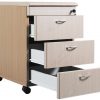 Hộc bàn làm việc royal được làm bằng gỗ công nghiệp melamine cao cấp, hộc có 3 ngăn để tài liệu sử dụng khóa dàn. Hộc không có bánh xe di động.