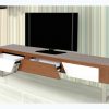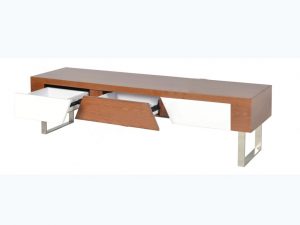 Kệ tivi cao cấp khung thép sơn tĩnh điện, mặt Veneer óc chó kết hợp sơn trắng High Glossy.