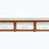 Kệ tivi cao cấp khung gỗ tự nhiên kết hợp gỗ công nghiệp sơn PU cao cấp. Được trang trí thêm các chi tiết màu gỗ tự nhiên trên mặt ngăn kéo và đợt. Mặt kệ sử dụng chất liệu lõi đá tự nhiên được phủ vân nhân tạo và gồm 2 ngăn kéo 2 cánh mở. Kệ tivi có thể điều chỉnh độ dài từ 1600 đến 2000 để phù hợp với diện tích phòng.