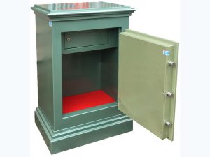 Két bạc an toàn két đứng sử dụng khóa chìa, khóa mã, tay nắm tròn, bên trong két có 1 ngăn phụ, khóa có chức năng cài đặt mã số mở khóa theo yêu cầu người sử dụng, Két cố định không có bánh xe di chuyển.