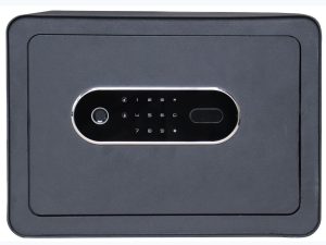 Két bạc khách sạn thiết kế bo cong hiện đại, sử dụng khóa điện tử có phím số cảm ứng kết hợp cảm biến vân tay và khóa chìa phụ, trong lòng két được phủ PVC cao cấp, có 1 đợt phụ.