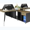 Modul bàn làm việc bright modul bàn làm việc 2 chỗ ngồi chân C15, mặt bàn melamine cao cấp có vách tôn sơn đen, bàn có hộc liền 1 ngăn kéo và 1 cánh mở, giữa 2 hộc có chỗ để giá CPU, bàn có yếm và máng điện đi kèm. Chân bàn thép dập định hình sơn màu đen nhám kết hợp mạ tạo sự thẩm mỹ và chắc chắn cho sản phẩm.