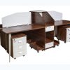Modul bàn làm việc luxury modul bàn làm việc 4 chỗ ngồi, mặt bàn gỗ melamine cao cấp, vách ngăn sử dụng là thép sơn tĩnh điện và được trang trí cách điện tạo nên sự thoải mái trong không gian văn phòng hiện đại. Khung và chân bàn thép sơn tĩnh điện màu trắng tạo sự thẩm mỹ và chắc chắn cho sản phẩm. (Gía chưa bao gồm hộc, CPU và bàn phím)
