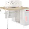 Modul bàn làm việc luxury modul bàn làm việc 2 chỗ ngồi, mặt bàn gỗ melamine cao cấp, bàn sử dụng vách tôn sơn trắng, bàn sử dụng hộc liền 1 ngăn kéo và 1 cánh mở, giữa 2 hộc có chỗ để CPU, bàn không yếm và máng điện. Khung và chân bàn thép sơn tĩnh điện màu trắng tạo sự thẩm mỹ và chắc chắn cho sản phẩm.