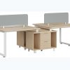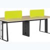Modul bàn làm việc royal có 2 chỗ ngồi, mặt bàn gỗ melamine mặt bàn chữ nhật có máng điện di dây kết hợp với giằng, vách ngăn gỗ bọc nỉ. Chân bàn sử dụng ống 10×50 sơn tĩnh điện có hộp điện đi dây và tăng cứng khung chân.