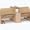 Modul bàn làm việc royal có 4 chỗ ngồi, mặt bàn gỗ melamine mặt bàn lượn cong, vách ngăn khung nhôm bề mặt 1 tầng gỗ và 1 tầng kính, Bàn có hộc liền 3 ngăn kéo thuận tiện cho người dùng trong quá trình sử dụng. Chân sắt sơn tĩnh điện màu ghi. Gía chưa bao gồm bàn phím, giá CPU.