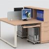 Modul bàn làm việc royal có 4 chỗ ngồi, mặt bàn gỗ melamine mặt bàn chữ nhật, vách ngăn kính. Khung thép hôp tam giác sơn tĩnh điện màu ghi. Gía chưa bao gồm hộc treo CPU, hệ thống hộp điện .