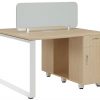 Modul bàn làm việc royal có 2 chỗ ngồi, mặt bàn gỗ melamine mặt bàn chữ nhật, có kệ để tài liệu trên mặt bàn, vách ngăn kính. bàn có hộc liền 3 ngăn kéo. Khung thép hôp tam giác sơn tĩnh điện màu ghi. Gía chưa bao gồm bàn phím và CPU.