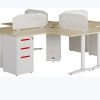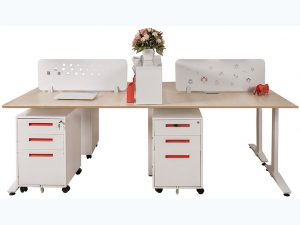 Modul bàn làm việc unique modul bàn làm việc 4 chỗ ngồi, mặt bàn gỗ melamine cao cấp có vát cạnh 45 độ phía người ngồi, ở giữa có vách ngăn bằng sắt đột lỗ trang trí, bàn có chân và hộp điện bằng thép sơn tĩnh điện màu trắng tạo sự thẩm mỹ và chắc chắn cho sản phẩm. Gía đã bao gồm vách ngăn trên mặt bàn chưa bao gồm hộc dời và decor.